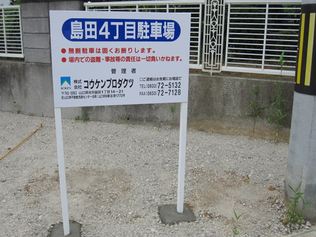 TOP 借りたい(賃貸) 島田4丁目駐車場 借りたい(賃貸物件情報) ← 戻る 光市島田 島田4丁目駐車場 駐車場 ※軽自動車限定 物件概要 種 別 駐車場 構 造 所在地 光市島田 4丁目3009番2 現 況 空あり 入居(引渡)時期 空 室 bT 完成年月 取引態様 管理 賃 料 3,000円 共益費 円 敷 金 1 ヶ月 礼 金 ヶ月 駐車場 なし 駐車場代 間取り 風呂・トイレ ― 風呂設備 トイレ設備 付帯設備 交 通 校 区 備 考 仲介手数料: 3,300円 (税込) 敷金: 3,000円 【毎月賃料】3,000円 所在地 地図をGoogleマップで表示 物件紹介書 [登録日] 2014/08/29 | [更新日] 2026/03/10 | 固定リンク