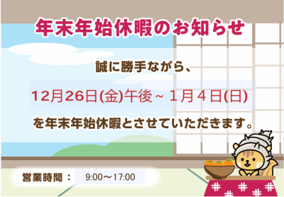 TOP お知らせ お知らせ すべての一覧を表示 [ページ] 1 1月の店休日 お知らせ 2025/12/25 1月の店休日は、1〜4、10、11、12、18、24、25となっております。 [登録日] 2025/12/25 | 固定リンク 年末年始休業のお知らせ お知らせ 2025/12/22 12月26日(金)午後〜1月4日(日)まで 誠に勝手ではございますが、上記の期間休業とさせていただきます。ご不便をお掛けしますが、何卒ご了承の程お願い申し上げます。 1月5日(月)より平常通りの営業となります。 [登録日] 2025/12/22 | 固定リンク 広告掲載物件 お知らせ 2025/12/19 光市中央3丁目 売土地 760万円 [登録日] 2025/12/19 | 固定リンク 12月の店休日 お知らせ 2025/12/01 12月の店休日は、7、13、14、21、27〜31となっております。 [登録日] 2025/12/01 | 固定リンク 広告掲載物件 お知らせ 2025/11/21 下松市北斗町 中古マンション 2,580万円 [登録日] 2025/11/21 | 固定リンク デジタルサイネージ広告 お知らせ 2025/04/08 動画を再生するには、videoタグをサポートしたブラウザが必要です。 動画が見られない方はこちら(別ページで開きます) このたび、株式会社コウケンプロダクツのサイネージ広告を光駅で放映いたします。駅をご利用の際は、ぜひチェックしてみてください!👀 [登録日] 2025/04/08 | 固定リンク