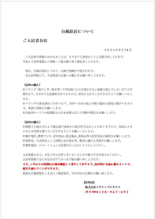 TOP お知らせ お知らせ ← 戻る 水道管凍結予防についてのお知らせ お知らせ 2026/01/21 1月21日(水)より冷え込むことが予想されます。 気温が氷点下となりますと水道管が凍結する可能性がございますので、 事前の凍結防止対策をよろしくお願いします。 光市水道局 水道管凍結防止対策 [登録日] 2026/01/21 | 固定リンク