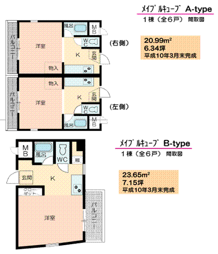 | 備 考 | Aタイプ:20.99u(6.34坪)【202・203・302・303】 Bタイプ:23.65u(7.15坪)【201・301】